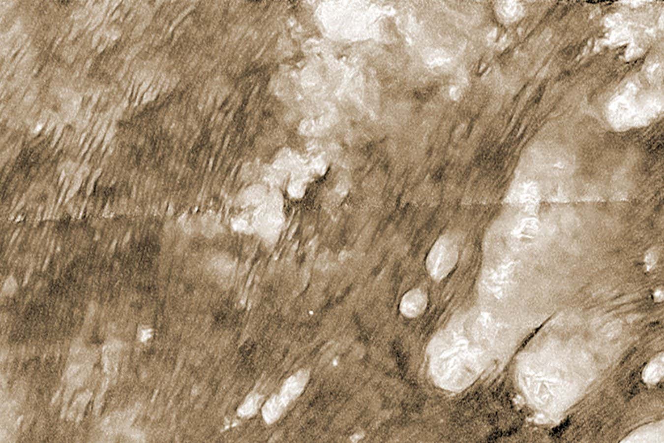 A radar image of the Shangri-La sand sea on Titan, taken from NASA’s Cassini spacecraft